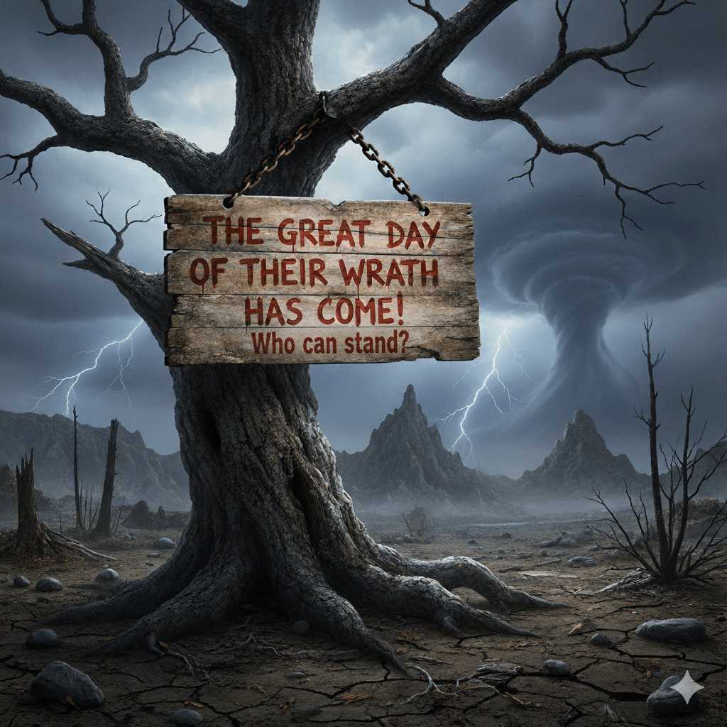 Finally, those who are “of the earth” try to hide from Their wrath and nobody is able to stand against it. There are several things to note in that: 1) they choose to hide from God in their sin, just as Adam and Eve did; 2) they would rather have the mountains and rocks fall on them and die than face Their judgment; 3) nobody “of the earth” is able to stand in the face of Their judgment, regardless of his/her position, power, wealth, status, achievement or even the lack of it.